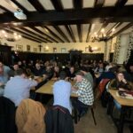 In 2 Gruppen besichtigten die TeilnehmerInnen dort die historische Brauerei, deren Geschichte zurückreicht bis ins Jahr 1405 (!). Besonderes Augenmerk legten die beiden Braumeister Michael Hanreich sowie Senior-Braumeister Martin Knab dabei auf die im Jahr 2024 eingebauten Lagertanks sowie die in 2025 installierten Keimkästen. Durch die Architektur der historischen Kellergewölbe kam jedoch auch der Gesamteindruck keineswegs zu kurz. Für die Lagertanks zeichnete erneut die Firma Kaspar-Schulz aus Bamberg verantwortlich. Beide Unternehmen verbindet eine enge und langjährige Partnerschaft, die weit über 100 Jahre hinaus reicht. Die Mälzerei-Anlage wiederum wurde von dem mittelständischen Spezialisten für den Schüttguttransport und Spezialanlagenbau Paul Hedfeld GmbH aus Gevelsberg in NRW installiert, und bietet die Besonderheit, dass bei einer sehr geringen Höhe des Keimgutes dieses besonders intensiv und schonend behandelt werden kann. Durch seine Bauweise aus Edelstahl fügt es sich zudem hervorragend in die historischen Bierkeller ein. Im Anschluss an die Brauereiführung trafen sich etwa 90 TeilnehmerInnen im Brauereiausschank in der Dominikanerstraße. Nach einer kurzen Begrüßung durch die Obmannschaft, bei der nochmals für die Mitte März bevorstehende Fachexkursion nach Schwaben getrommelt wurde, übernahm Inhaber & Bräu Matthias Trum, Bräu in 6. Generation, das Rednerpult. Er begrüßte die Gäste herzlich und ging in einem äußerst interessanten und kurzweiligen Vortrag auf die Geschichte des Rauchbieres insgesamt sowie der in der Bierstadt Bamberg im Speziellen ein. Im Jahr 1866 erwarb mit Konrad Graser die 1. Generation der heutigen Inhaber-Familie die damalige Brauerei „Zum Heller“, die heute noch unter dieser Bezeichnung firmiert. Seit am 23. Juli 1635 die sog. Rauchfreie Darre in England entwickelt wurde, sind heuer nurmehr 2 (!) Brauereien verblieben, die die Tradition der Rauchbierherstellung DURCHGÄNGIG bewahrt haben. Neben dem Schlenkerla ist dies die ebenfalls in Bamberg beheimatete Brauerei SPEZIAL. Dieses besondere Ereignis wird in Bamberg auch heuer noch an diesem historisch bedeutsamen Datum gefeiert, mit dem sog. „Tag der Rauchbierbewahrung“. Auch um den Namen von Konrad Graser zu würdigen sowie dem zunehmenden Trend nach rauchfreien Lagerbierspezialiäten Rechnung zu tragen, wurde 2025 der Brauereiausschank und Wirtshaus GRASER in der Brudermühle in Bamberg eröffnet, das sich ebenfalls steigender Beliebtheit erfreut. Tradition und der Blick in die Zukunft sind die Garanten dafür, dass Familie Trum optimistisch in die Zukunft blicken kann. Oder wie Matthias Trum es zum Abschluss seines Vortrags mit einem Zitat von Jean Jaurès sehr treffend formulierte: „Tradition ist die Weitergabe des Feuers und nicht die Anbetung der Asche“!