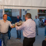 Martin Neubert und sein Stellvertreter Andreas Trunk dankten den Gastgebern, der Fachpresse und dem Brotzeitsponsor, fassten sich kurz – denn der Duft des Ochsen lockte. Nach den Gastgeschenken folgte das, worauf alle gewartet hatten: der Anschnitt des Ochsen.